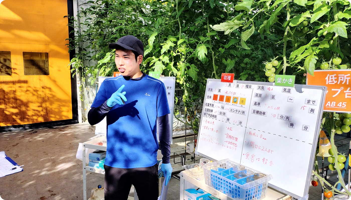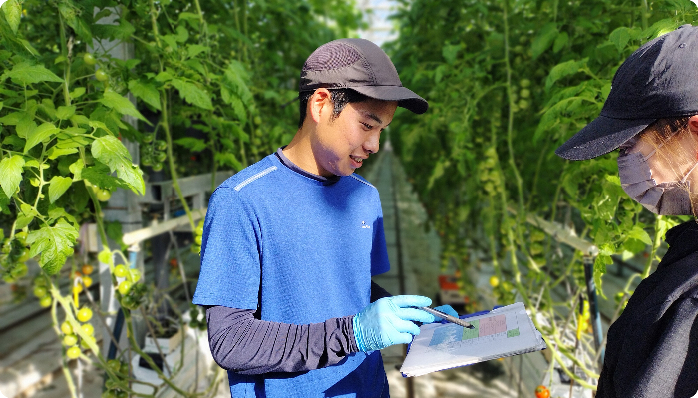 任せられる仕事が増えてハードルは上がっていますが、その中で試行錯誤して自分の作業効率と精度を上げることができた時。さらに、そこでの気づきや学んだことをパートさんや海外人材への指導に生かして、みなさんが納得して実行してくれた時にやりがいを感じます。理想は、その結果が数字に表れること。自分の業務が農場全体の成果に良い影響を与えることができればもっと大きなやりがいを感じられると思うので、今はそこを目指して努力しています。