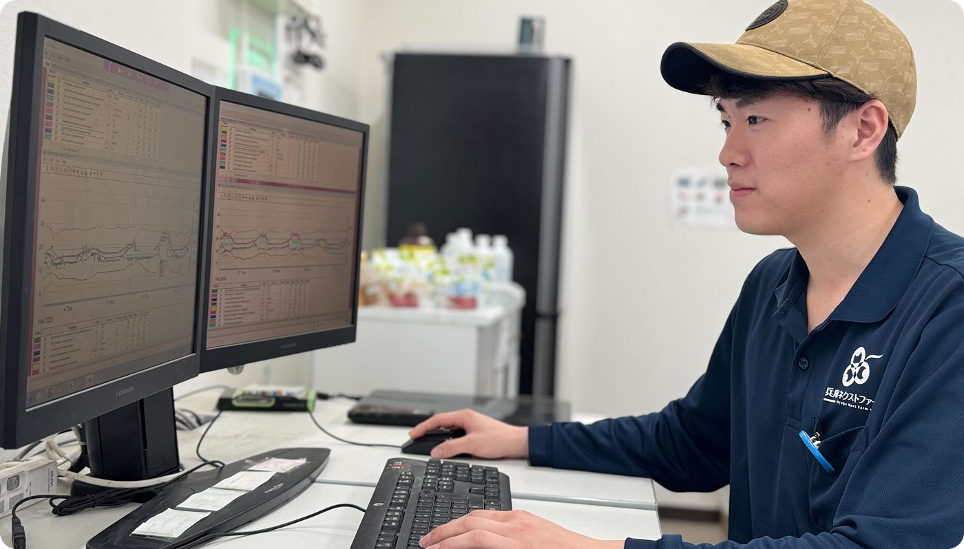グロワーとして、栽培管理を中心にさまざまな業務を担当しています。生育調査などの各種調査や設備の管理保全、農場全体の維持管理、防疫管理の徹底、さらに統合環境制御システムを使って最適な栽培環境にコントロールしたり、データを収集・分析して方針を決めたり。まさにマルチタスクが求められる仕事です。入社後にギャップとして感じたのは、最新の設備を備えたハウスであっても、やはり自然の影響を完全には避けられないんだなということ。日々、判断や対応が求められる中で「正解がない」農業の難しさも実感します。
